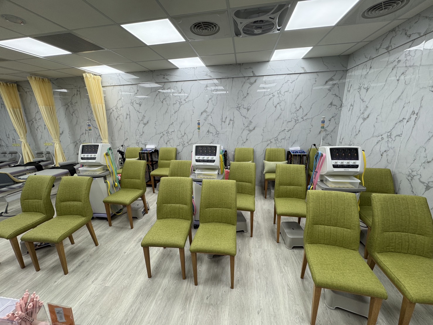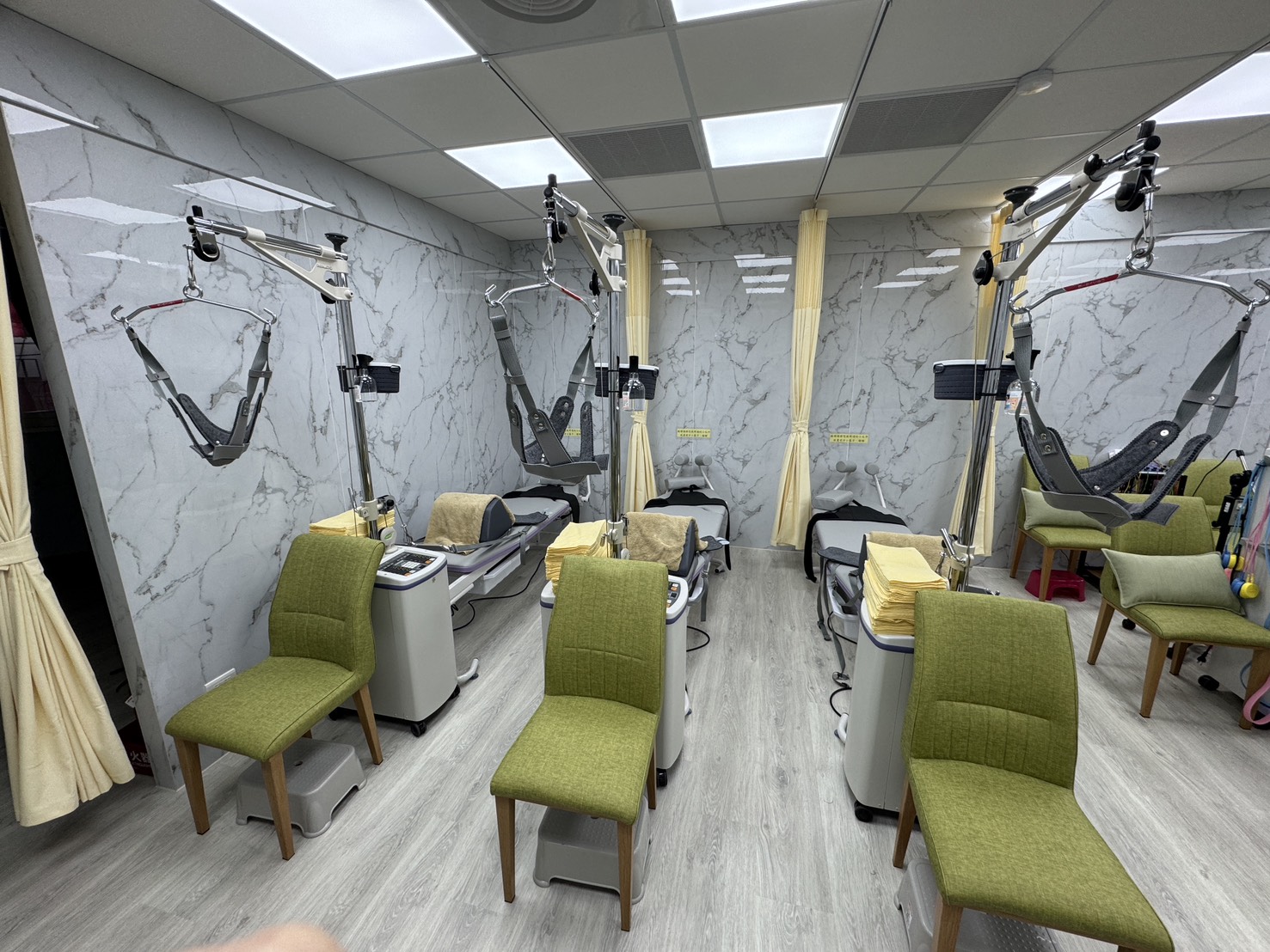 電腦X光機檢查(PACS系統)、骨骼肌肉超音波檢查、冷雷射治療儀、復健牽引機、中頻干擾波、低頻電刺激器、紅外線、復健超音波機、